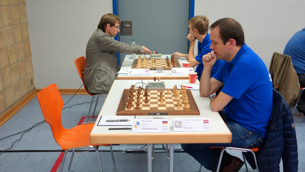 2:0 durch Großmeister (GM) Arturs Neiksans am Spitzenbrett, der bereits früh im Mittelspiel einen Bauern gewinnt, diesen jedoch zurückgibt, um einen Freibauer zu bekommen. Ein Qualitätsopfer bringt ihm dann den entscheidenden Vorteil zum Partiegewinn.