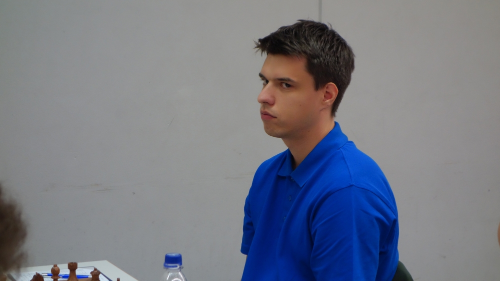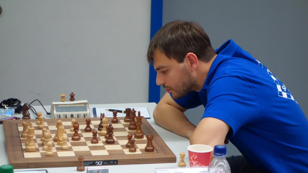 1,5:2,5 durch IM Luca Shytaj. Er kam kaum aus der Eröffnung, brauchte für die ersten 12 Züge bereits fast eine Stunde Zeit, konnte sich danach aber befreien und einen Bauern gewinnen. Bei der entstandenen offenen Stellung fand sein Gegenüber jedoch problemlos ein Dauerschach mit Stellungswiederholung, was eine Punkteteilung bedeutete.
