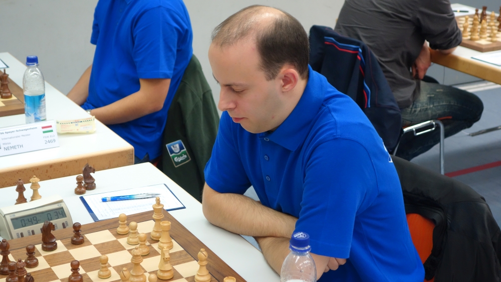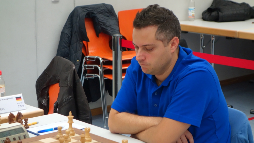 1:0 durch den internationalen Meister (IM) Attila Csonka an Tisch 7. In der wohl sehenswertesten Partie des gesamten Wochenendes opfert er eine Figur, um den König seiner bewachenden Bauern zu berauben. Der Spielpartner wählt alternativ einen Qualitätsgewinn, der ungarische Pfälzer bedrängt jedoch mit drei Figuren den gegnerischen Monarchen, sodass dieser am Ende aufgeben muss.