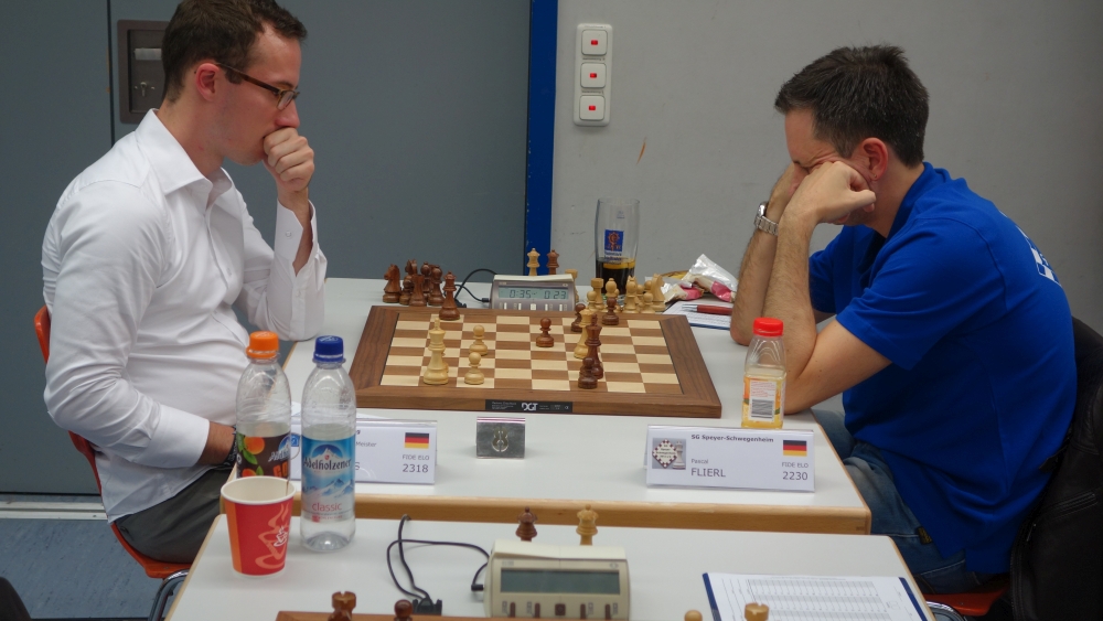4,5:3,5 durch Pascal Flierl (8). Eine unnötige Niederlage, da der Pfälzer in ein Damenendspiel mit Mehrbauer abwickeln konnte, welches wohl schwer zu gewinnen war, aber keinesfalls verloren werden sollte. Dann bekam er wohl offensichtlich Nervenflattern.